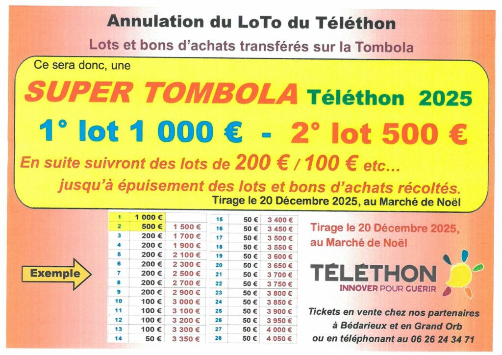 Tickets de tombola disponibles en mairie aux heures d’ouverture du secrétariat.
